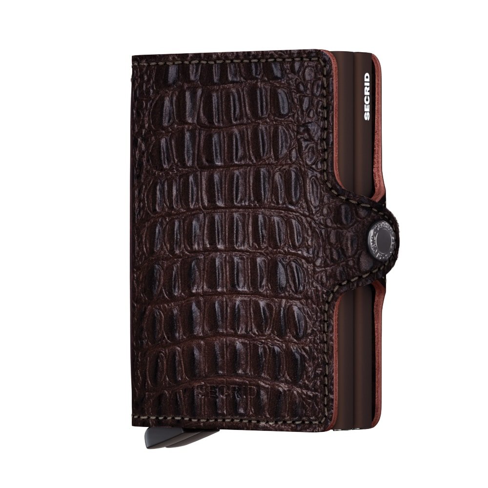 Twinwallet Nile is hoogwaardig kroko, gemaakt van runderhuiden. De diepe tinten worden bereikt met de speciale tamponato-techniek en de hoogglans waslaag.