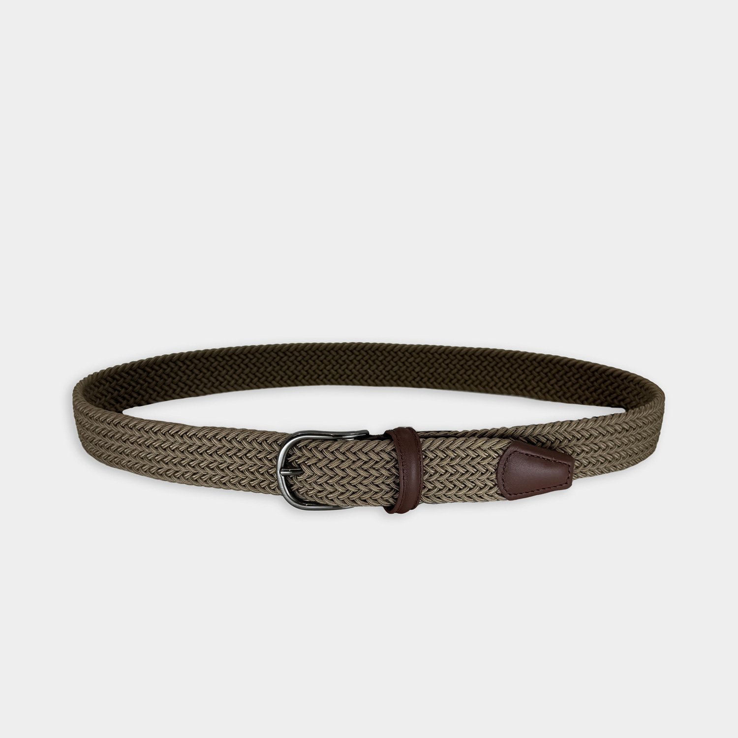 Anderson’s – Handgemaakte gevlochten stretchriem met bruin lederen details en zilverkleurige gesp.