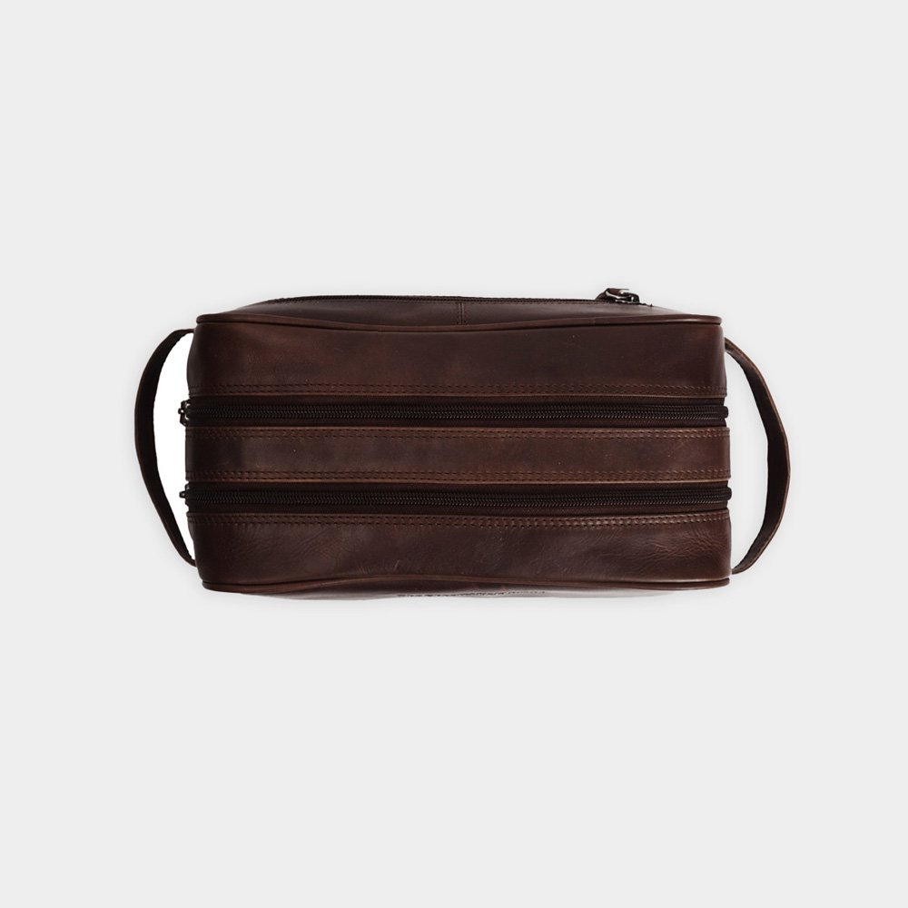 Toiletzak gemaakt uit kalfsleer. Ook beschikbaar in zwart en cognac kleur.